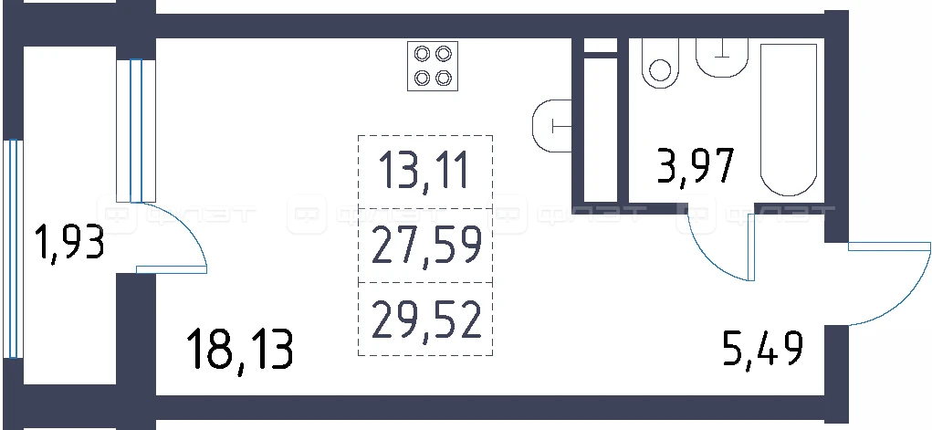 - 29.52/13.11/5.02 м²